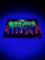 Original artwork hand-painted with colored spray and fluorescent spray on 250 g paper.